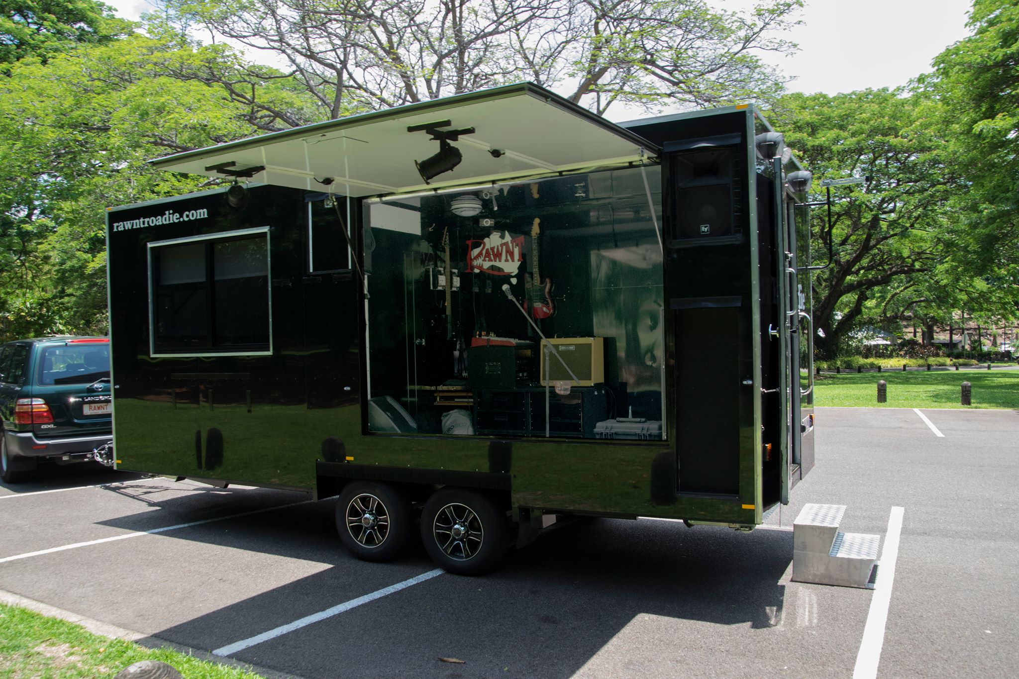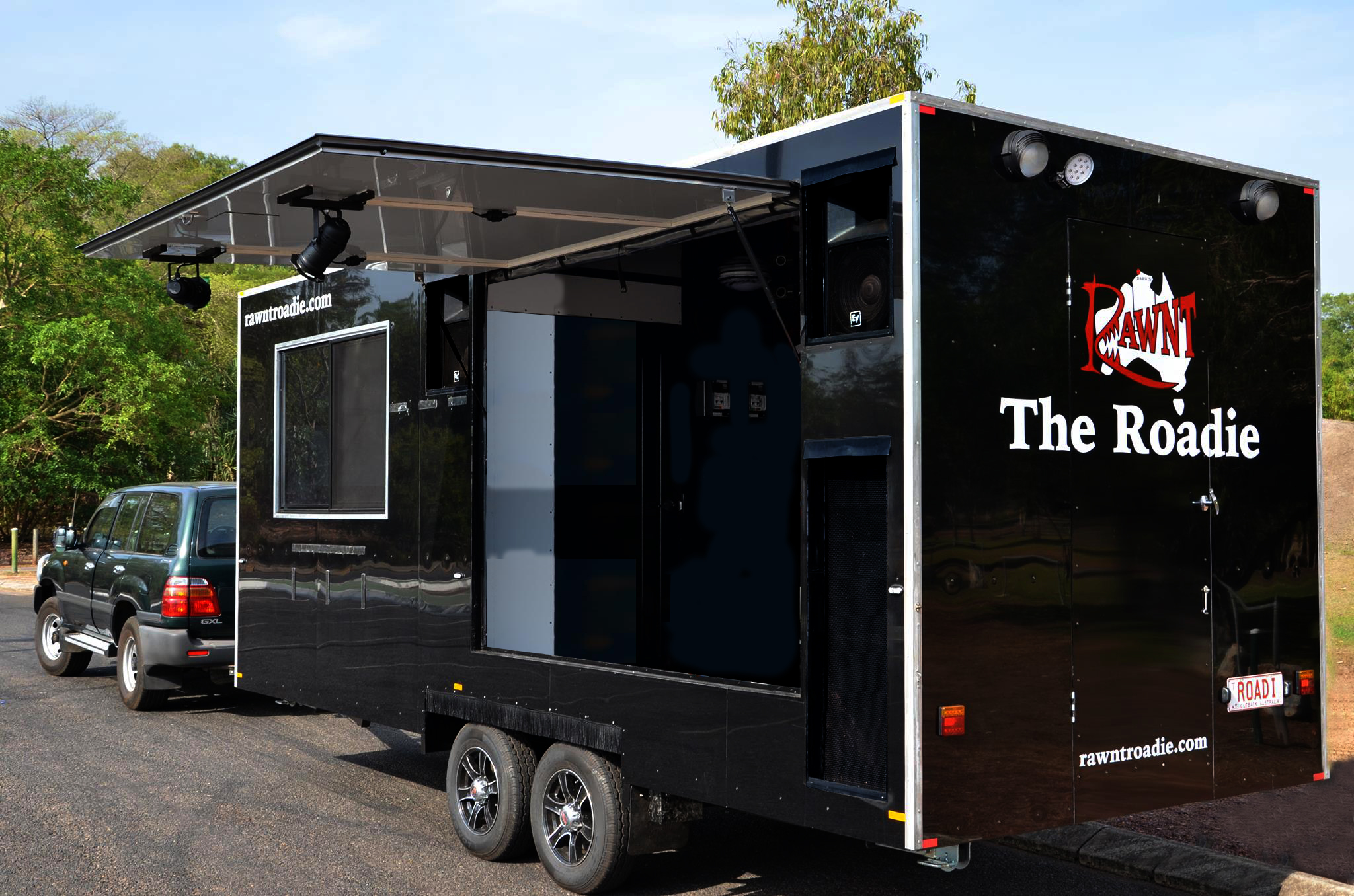 The Roadie, running on generator or mains power, can be a mobile entertainment stage and deliver clear sound and vision (at night).